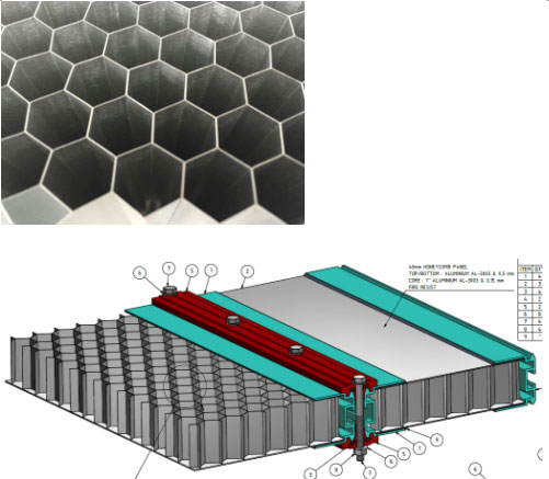 浮力元件,作為裝配式內(nèi)浮盤的主要元件,目前國(guó)內(nèi)外應(yīng)用較多的有浮筒、浮箱、蜂窩板,在浮力相近、強(qiáng)度相近的情況下,浮筒的強(qiáng)度很差,浮箱的重量很大,蜂窩板容易被儲(chǔ)罐儲(chǔ)液浸潤(rùn)后脫膠而導(dǎo)致強(qiáng)度失效。